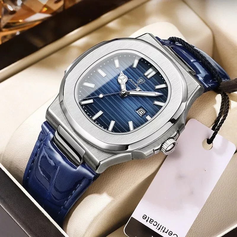 Poedager Men's Luxury Chronograph Watch - 100M Waterproof, Luminous Quartz Movement, Stainless Steel.